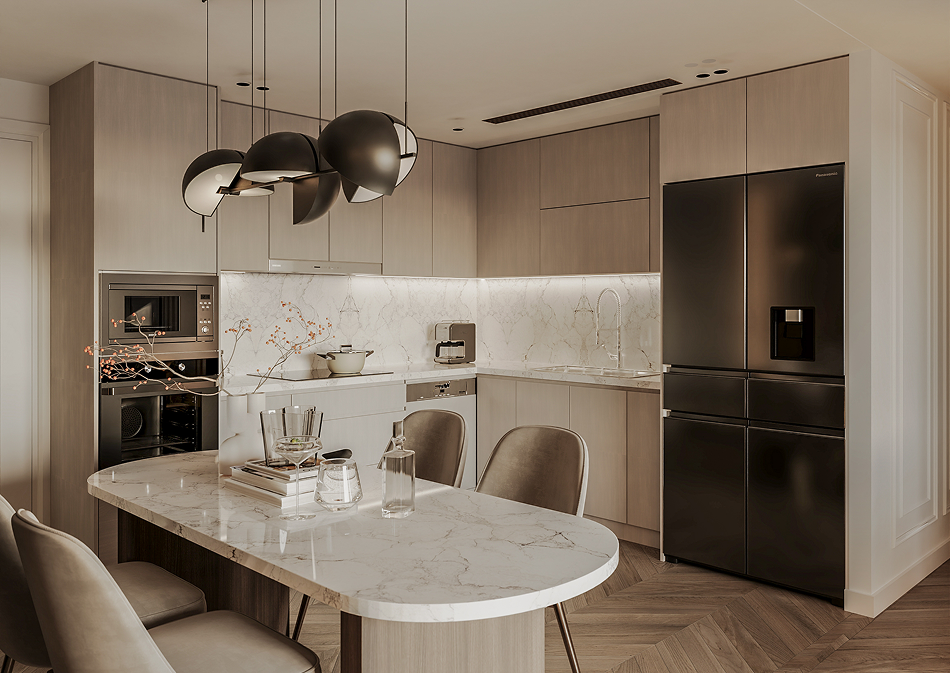 Bathed in natural light, our serene two-bedroom apartments provide contemporary living quarters filled with a sense of comfort and convenience. Spacious and stylish with a modern kitchen and spa-like bathroom, the two bedrooms are of a generous size with ample storage space and high-end finishes.